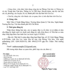 Đối tượng: cán bộ văn hóa, văn nghệ sĩ trên địa bàn tỉnh Gia Lai | Thời gian: từ 20/9 đến 22/9/2021 | Hình thức: trực tuyến | trực tiếp phát trên youtube